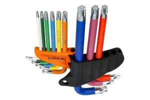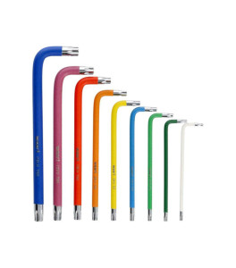 Každý klíč je barevně označen, což usnadňuje rychlou identifikaci správné velikosti.