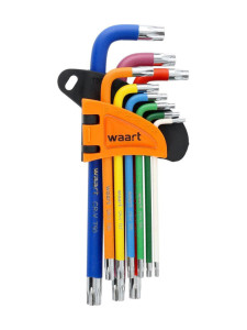Sada 9 klíčů Torx, s otvorem a magnetem, ve velikostech od T10 do T50.