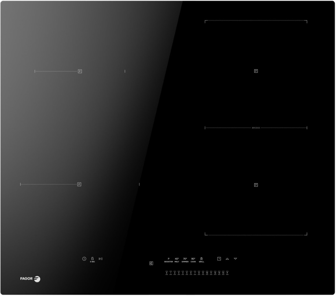 Indukční zóna Booster 16 cm (1,4 / 2,1 kW) 1x *nebo Auto Bridge 18 x 36 cm (3 / 3,7 kW)