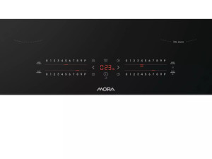 - 4 indukční zóny (2x 180 mm, 1,4/2,1 kW, 1x 230 mm, 2,3/3 kW, 1x 145 mm, 1,2/1,8 kW)