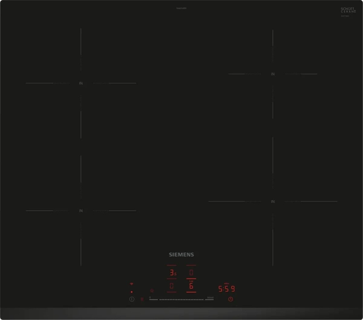 ÚvodKuchyněKuchyňské spotřebičeVarné deskyIndukční varná deska Siemens 60 cm instalace na pracovní desku bez rámečku EH631HEB1E