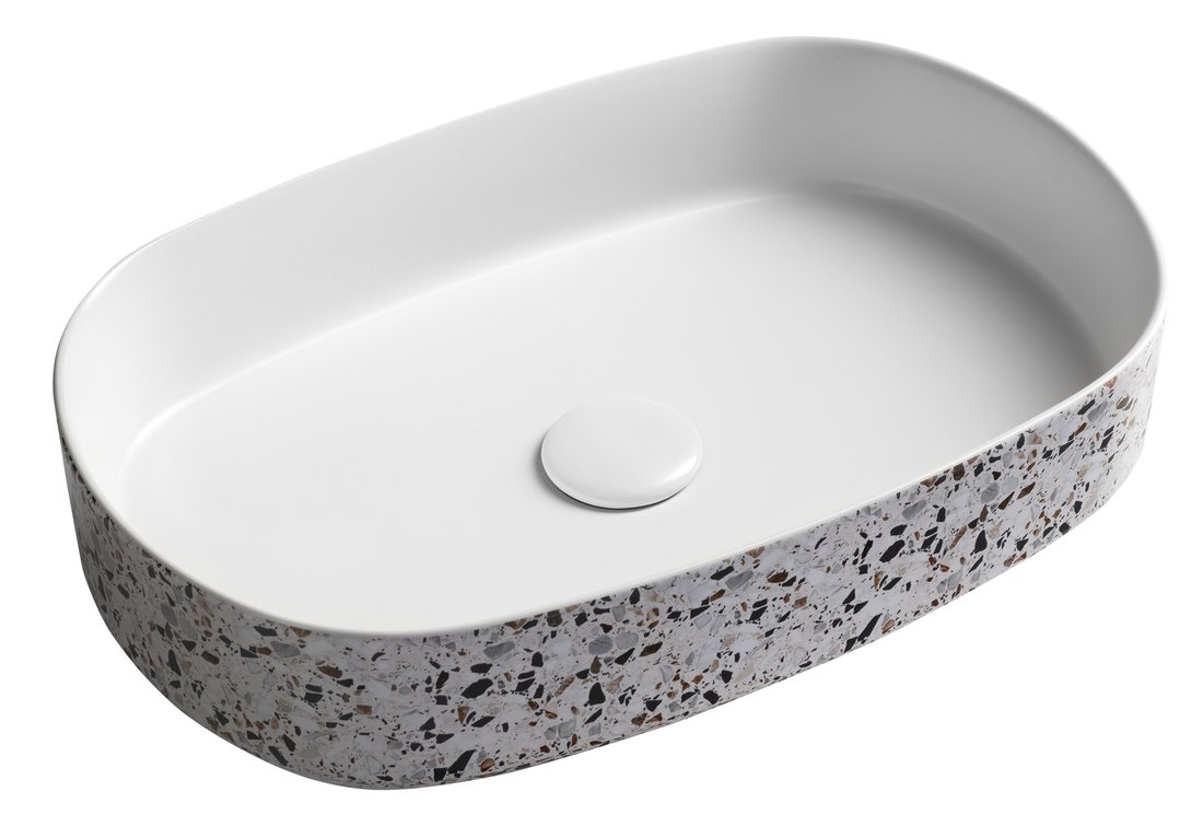 INFINITY OVAL keramické umyvadlo na desku, 55x36cm, terrazzo