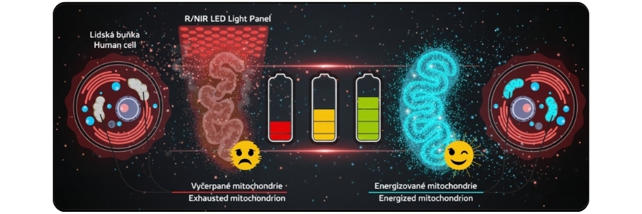 ? Blízké infračervené světlo (NIR) zase stimuluje tvorbu mitochondrií a zvyšuje tak tvorbu buněčné energie. Mitochondrie v buňkách totiž fungují podobně jako baterky – střádají energii pro řádné fungování buňky samotné. Proteiny v mitochondriální stěně reagují na infračervené světlo a způsobí, že buňka začne vyrábět více energie. Buňky tak dostanou dostatek „šťávy“ na to, aby mohly dokonale provádět své obvyklé funkce včetně tvorby buněk nových.