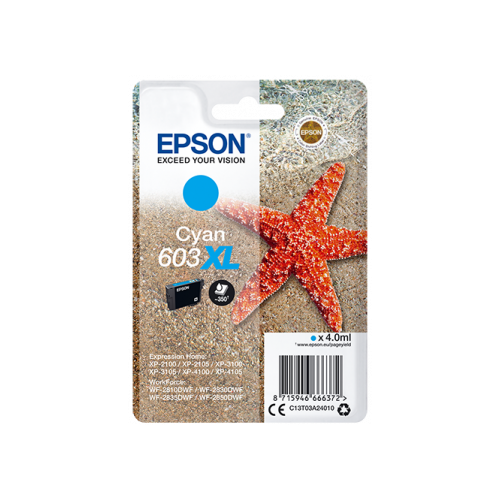 Dotaz na produktAzurový inkoust Epson 603XL je cenově dostupný a zajišťuje nenákladný a spolehlivý tisk. Je výsledkem rozsáhlého výzkumu a vývoje prováděného společností Epson. S tímto inkoustem budou vaše výtisky vždy jasné a živé. Je optimalizován pro použití s vybranými tiskárnami Epson. Dokáže tisknout nejrůznější dokumenty s detailním textem i grafikou.