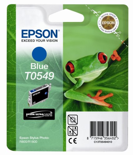 Epson T0549 je inkoustová kazeta azurové barvy, která je určená pro tiskárny Epson Stylus R800 a R1800. Originální barva poskytuje obsah 13 ml.