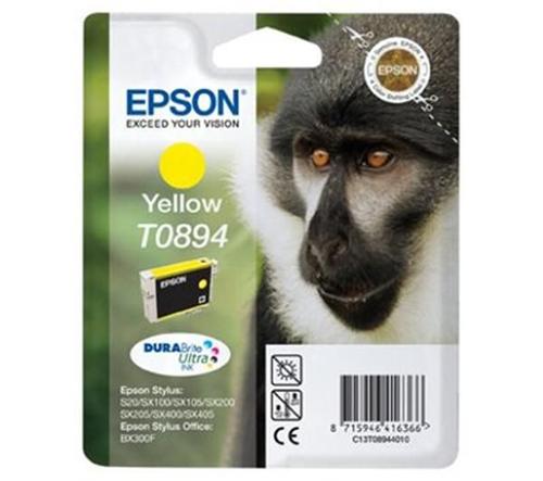 Epson T0894 je žlutá inkoustová kazeta určená pro tiskárny Epson Stylus S20, 21, SX100, 105, 110, 115, 200, 205, 210, 215, 400, 405, 405WiFi, 410, 415, Stylus Office BX300F. Originální náplň poskytuje objem 3,5 ml.