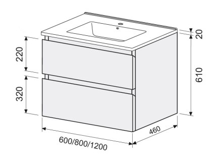 šířka 80 cmhloubka 46 cmvýška 61 cmbarva skříňky dub halifaxbarva lišty mezi zásuvkami dekor dub halifaxbarva úchytek černámateriál MDF deska 18 mmABS hrany lepené PUR lepidlem - vysoká odolnost...