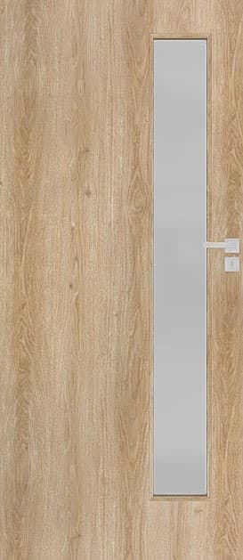 Moderní interiérové dveře, které budou ozdobou každého interiéru. Desková konstrukce s dřevěným rámem, voštinovou výplní, bílé matné sklo tl. 4mm, odolná 3D fólií v žádaném a velmi pěkném dekoru. Dveře lze osadit jak do stávající ocelové zárubně v české normě nebo do obložkové zárubně. Dveře mají dozický zámek na klíč (WK) (rozteč 72 mm).