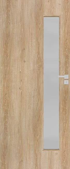 Moderní interiérové dveře, které budou ozdobou každého interiéru. Desková konstrukce s dřevěným rámem, voštinovou výplní, bílé matné sklo tl. 4mm, odolná 3D fólií v žádaném a velmi pěkném dekoru. Dveře lze osadit jak do stávající ocelové zárubně v české normě nebo do obložkové zárubně. Dveře mají dozický zámek na klíč (WK) (rozteč 72 mm).