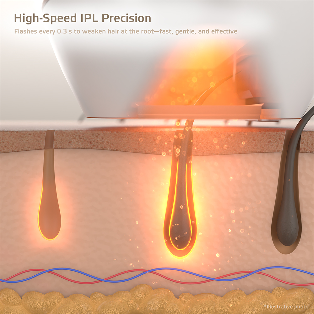 Vysokorychlostní IPL technologie s frekvencí záblesků každých 0,3 sekundy zasahuje přímo ke kořínkům chloupků a přerušuje jejich růstový cyklus. Výsledkem je postupné řídnutí ochlupení a nakonec jeho úplné vymizení. Díky rovnoměrnému rozložení světelné energie je ošetření nejen efektivní, ale i velmi pohodlné – bez pálení, podráždění nebo nepříjemného pocitu. inSPORTline Aphira tak nabízí profesionální výsledkyv pohodlí domova, bez nutnosti návštěv kosmetického salonu.