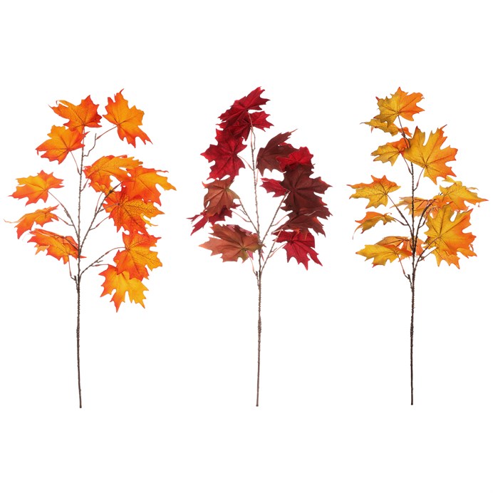 Dotaz na produkt Na splátky ještě dnesUmělá větev s javorovým listím v nádherných podzimních barvách. Jedná se o mix 3 druhů v odstínech žluté, oranžové nebo červené, který přinese do vašeho domova pestrobarevnou podzimní atmosféru. Listí vám neopadá, takže tato dekorace zůstane stále krásná a svěží, jako byste větvičku právě utrhli ze stromu. Cena je uvedena za 1 kus.