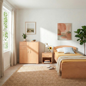 barevné provedení buk výška sedu 41 cm, cena bez roštu a matrace doporučený rozměr matrace 90 × 200 cm (M2, M5, M9, M12, M24, M26) a rošt R1 k jednolůžku možno dokoupit úložný prostor 147A
