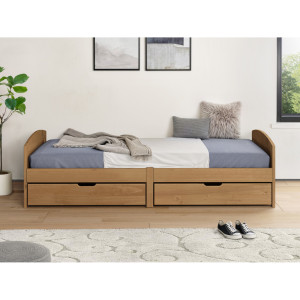 Dotaz na produkt Na splátky ještě dnesmateriál masiv borovice, voskované provedení 2 zásuvky pojízdné na kolečkách jsou v ceně cena včetně roštu (dřevěný laťkový) bez matrace doporučený rozměr matrace 90 × 200 cm