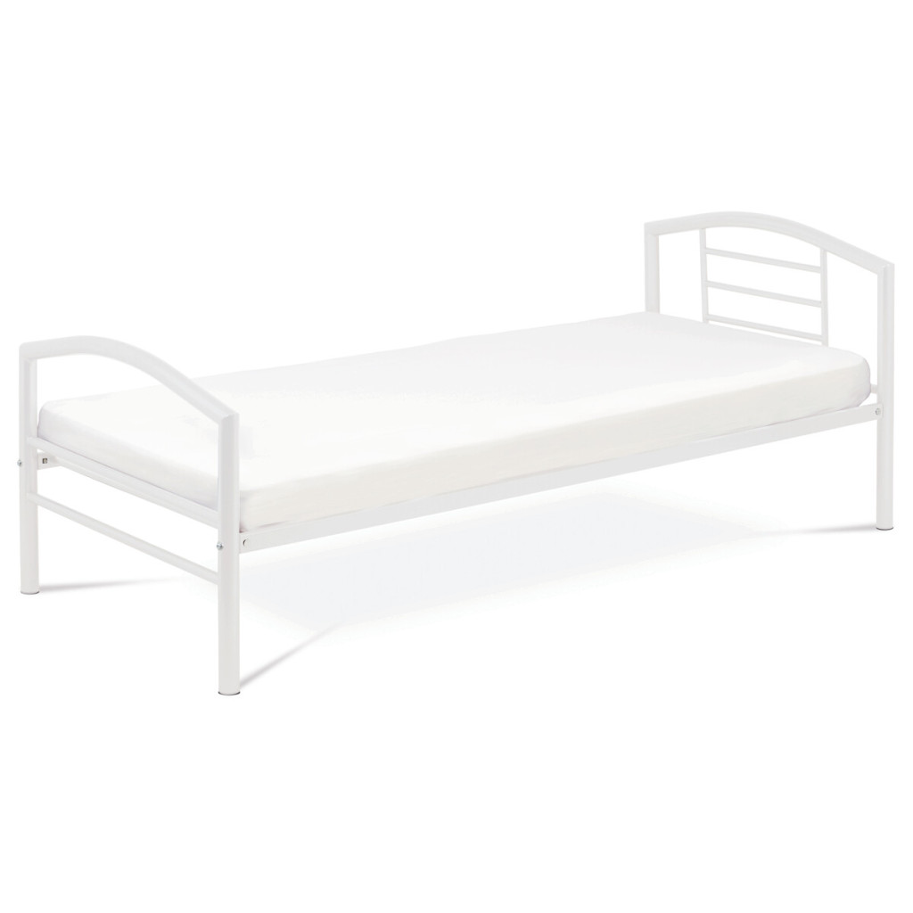 Dotaz na produkt Na splátky ještě dnesModerní jednolůžková postel značky Autronic v nadčasové bílé barvě je ideální pro ložnice i dětské pokoje. Pevná kovová konstrukce zaručuje vysokou stabilitu a odolnost, zatímco jednoduchý design snadno zapadne do jakéhokoliv interiéru. Postel je vhodná pro matraci o rozměrech 90 × 200 cm, což poskytuje dostatek prostoru pro pohodlný spánek. Skvělá volba pro ty, kdo hledají praktický a stylový nábytek, který kombinuje funkčnost s elegantním vzhledem.
