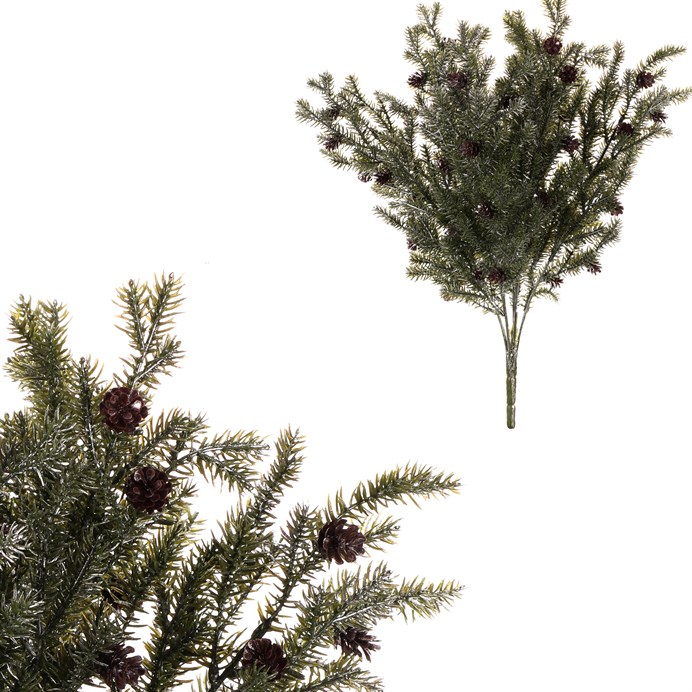 Dotaz na produktUmělá větev s jehličím a šiškami přináší kouzlo zimní přírody přímo k vám domů. Zelené větvičky s jemným stříbrným zdobením a drobnými šiškami věrně napodobují jehličnan, připomínající borovici, a přitom vám nikdy neopadá. Ideální pro trvanlivou vánoční výzdobu, ať už ji umístíte samostatně do vázy, nebo využijete jako součást komplexnějších sváteční aranží.