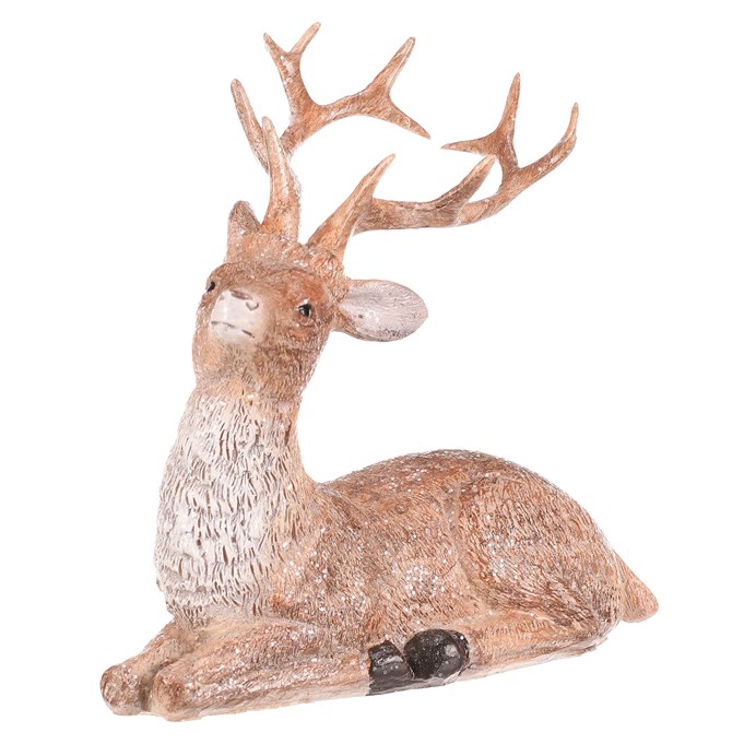 Dotaz na produktZvířecí figurka, v podobě sedícího jelena z polyresinu, vám dokonale oživí sváteční prostor, ať už na stole, poličce, nebo jiném viditelném místě. Vytvořte si díky němu pohádkové zvířecí království společně s dalšími figurkami ať už právě jelenů, nebo dalších druhů sošek a přízdob, které nabízíme. Je hnědý s krásně tvarovaným parožím a doplněný jemnými třpytkami, které umocní kouzelnou vánoční atmosféru u vás v teple domova.