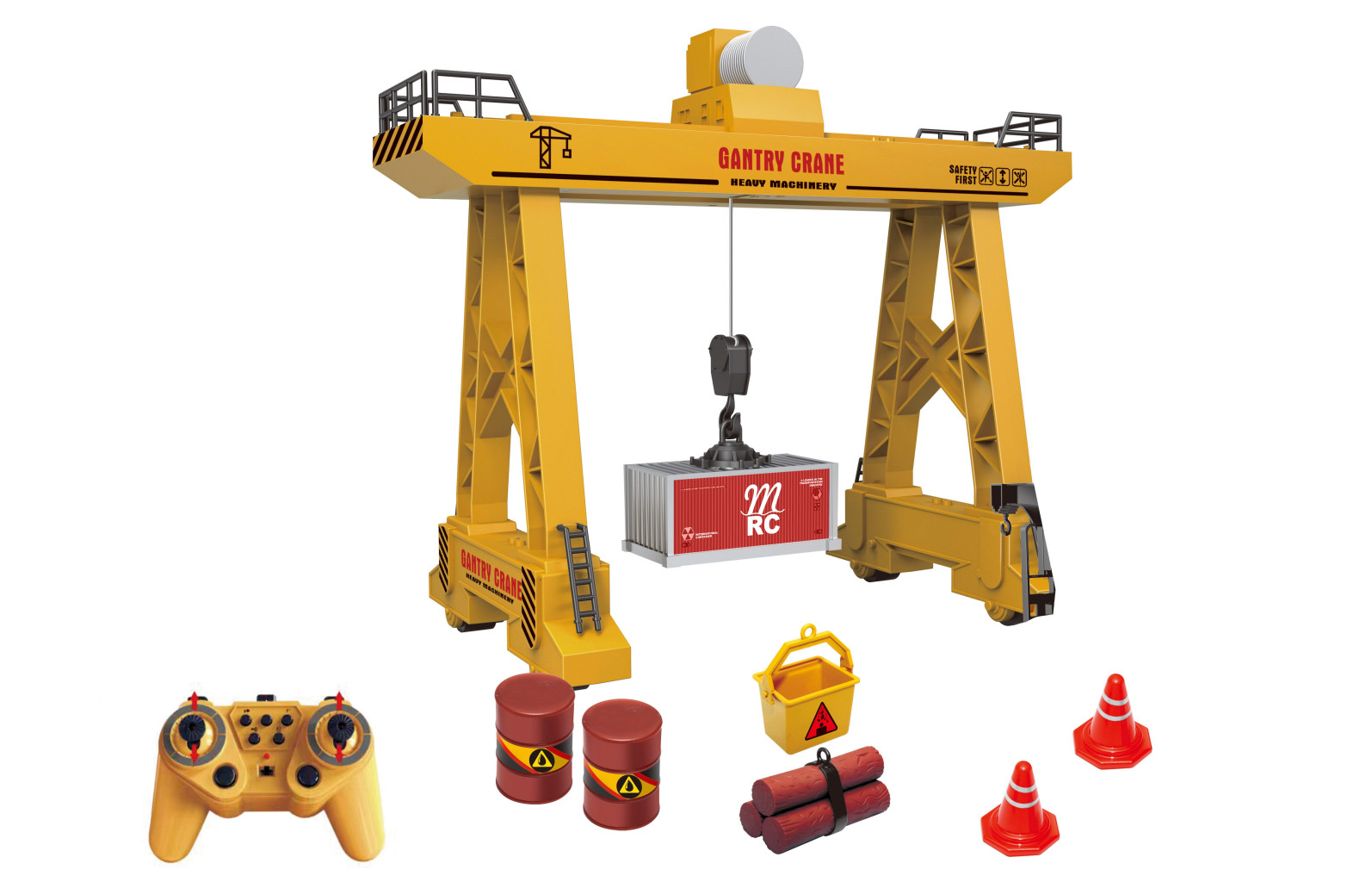 Dotaz na produktJeřáb portálový RC na dálkové ovládání. Rozměry 33x17x27 cm. Součástí jeřáb, nabírací nádoba, kontejner, 2 barely, 2 klády, 2 kužely. Frekvence 2.4GHz. Světelné a zvukové efekty. Ovladač - pohyb dopředu, dozadu, otáčení na místě, levé velké tlačítko - zvedání nákladu, pravé velké tlačítko - pokládání nákladu, 5 malých tlačítek - klakson, světlo, zvukové efekty, startování, demo režim. 3.7V bateriový pack do jeřábu součástí, 2xAA do ovladače nejsou součástí. USB kabel součástí. Přepínač ON/OFF jeřábu a na ovladači.