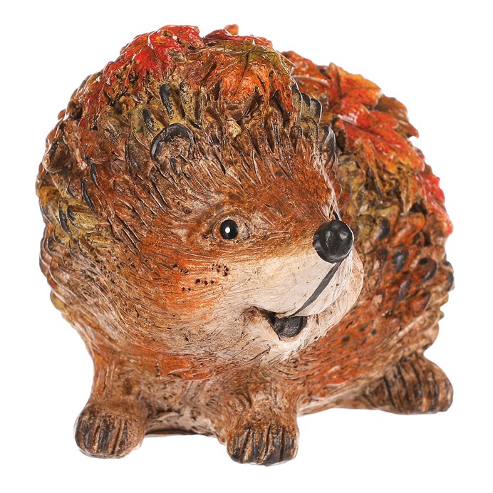 Dotaz na produktFigurka ježka z magnesia pokrytá barevnými lístky v červeno-hnědých tónech je originální dekorace, která zaujme na první pohled. Detailní zpracování a přírodní motivy z ní dělají nádherný doplněk pro váš domov nebo zahradu. Perfektní pro doladění podzimní výzdoby s nádechem barevného lesního království.