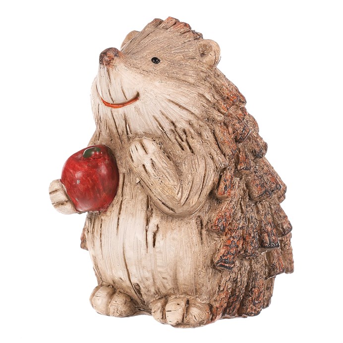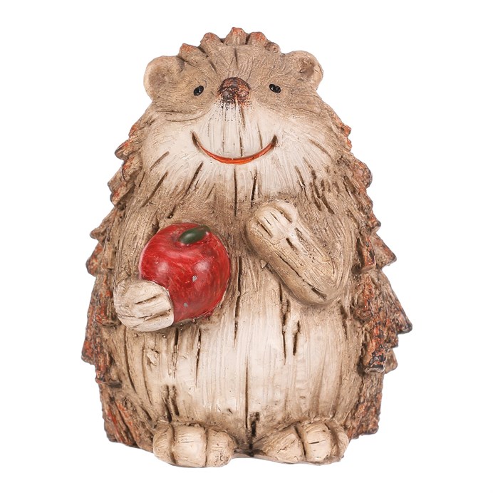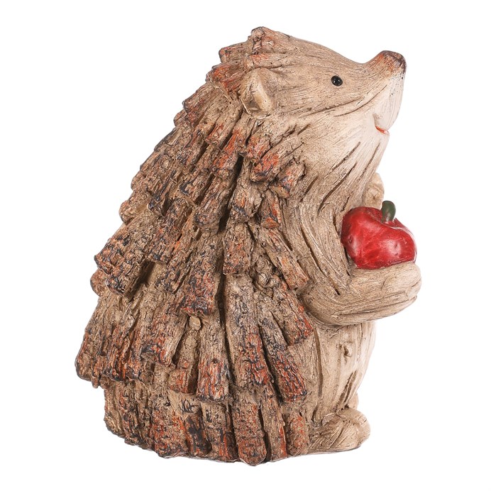 Dotaz na produktZahradní figurka v podobě ježka svým provedením krásně zapadne mezi keře a další dřeviny, čímž vytvoříte nádherné lesní zátiší. Ježek v béžovo-hnědých odstínech a s červeným jablíčkem je vyroben z polyresinu, ale vypadá jako by byl právě ze dřeva. Jeho bodliny jsou tvořeny jakoby drobnými nasekanými částmi větviček.