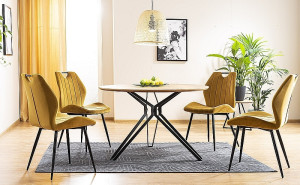 Dotaz na produkt Na splátky ještě dnesAtraktivní čalouněná židle vhodná nejen do Vaší jídelny a kuchyně, ale také do kanceláře, čekárny či recepce. Kovová konstrukce je v barvě černá mat, čalounění je z látky velvet aksamit v barvě oranžová-skořicová. Židle se hodí ke stolům, které najdete v naší uvedené nabídce. Dodáváme v demontovaném stavu.