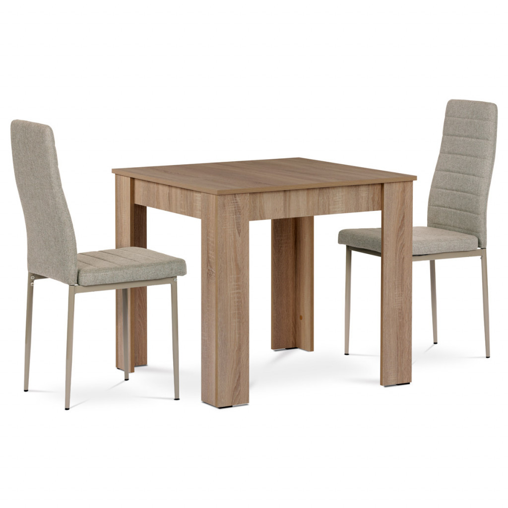 Moderní jídelní set Autronic v elegantním provedení dub Sonoma přinese do vaší jídelny styl i praktičnost. Čtvercový stůl s pevnou MDF deskou a robustními nohami zaručuje stabilitu a dlouhou životnost. Židle s kovovou konstrukcí a měkkým krémovým čalouněním nabízejí pohodlné sezení díky ergonomickému tvaru a vysokému opěradlu. Tento kompaktní set je ideální pro menší prostory, kde oceníte jeho nadčasový design a kvalitní zpracování. Skvělá volba pro moderní domácnost.
