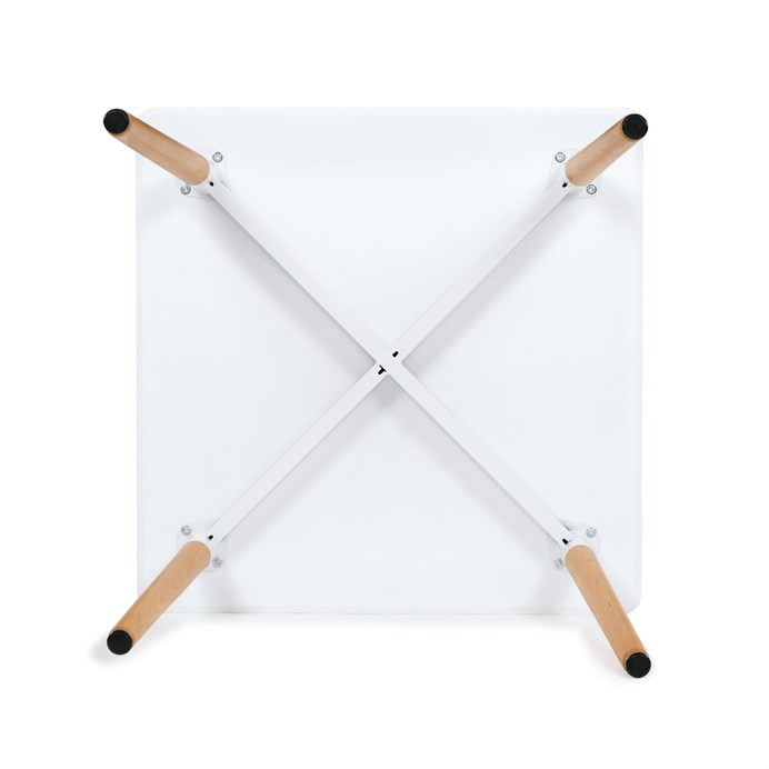 Jídelní stůl o rozměrech 80x80x74 cm zaujme kombinací bílého matného MDF povrchu desky a nohou z masivního dřeva, které dodávají stabilitu a přírodní vzhled. Deska stolu je opatřena matnou povrchovou úpravou, která usnadňuje údržbu a minimalizuje odlesky. Zaoblené rohy přispívají k bezpečnosti a zároveň podtrhují moderní design. Rektifikační nohy umožňují vyrovnání stolu na nerovném povrchu, což zajišťuje pevné a stabilní postavení. Celková konstrukce spojuje pevnost kovových spojů s estetickou hodnotou dřevěných prvků.