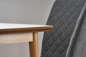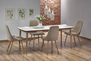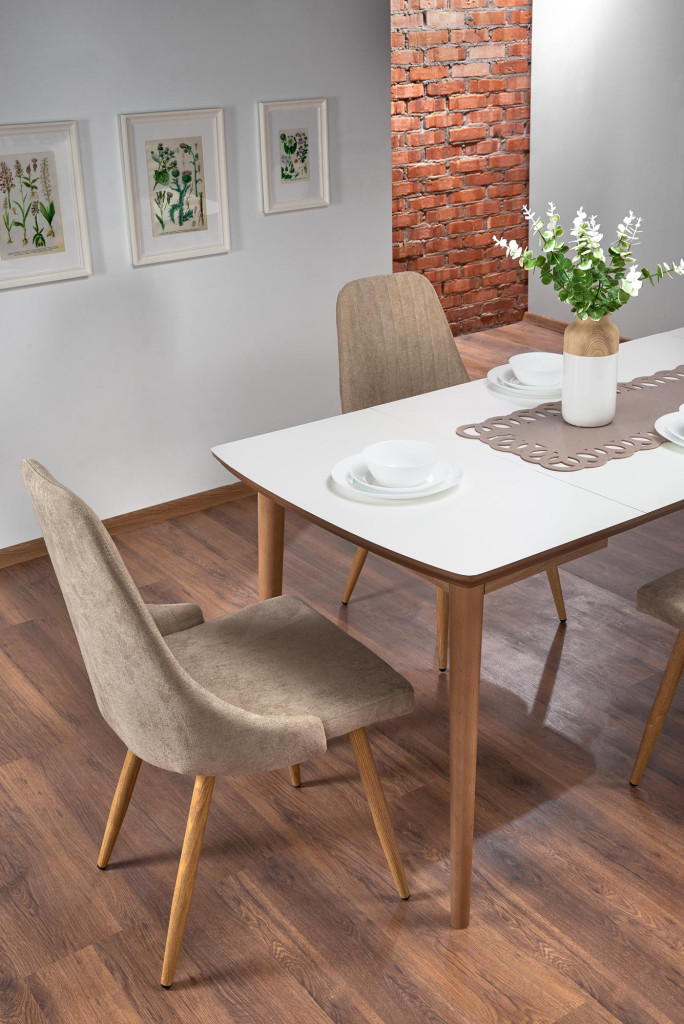 Jídelní stůl se dodává v nápaditém designu. Stůl se dodává v barevném provedení - matná bílá. Ke stolu doporučujeme židle K285.