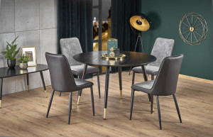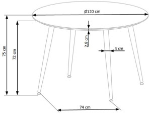 Kulatý jídelní stůl je vyroben v kombinaci lamina a ocele. Deska stolu je z bílé lakované MDF desky a nohy stolu jsou z práškované ocele. Ke stolu doporučujeme dokoupit jídelní židle.