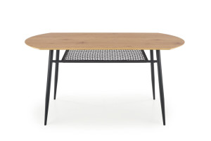 Jídelní stůl je vyroben v kombinaci MDF, ratan a kov.