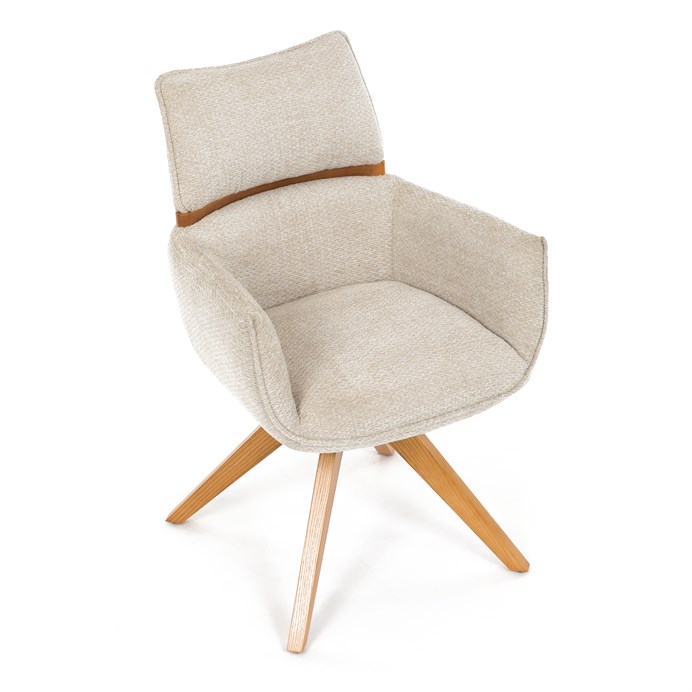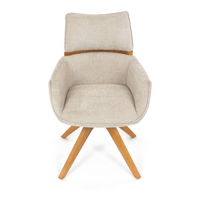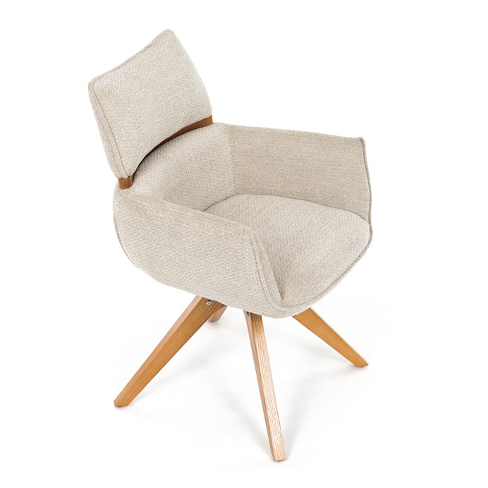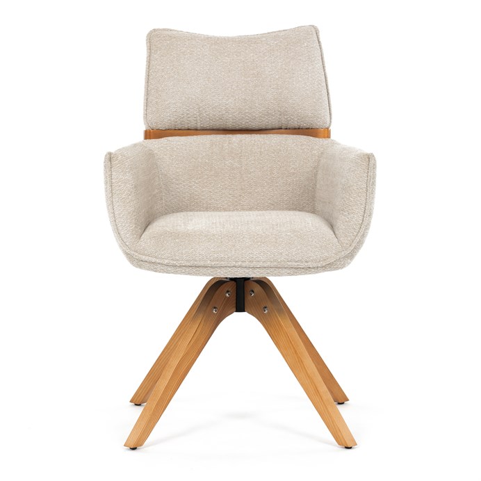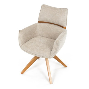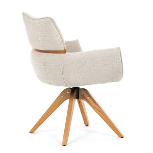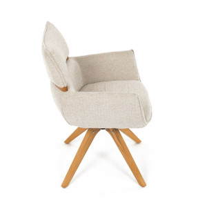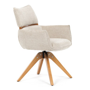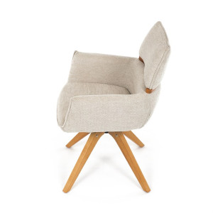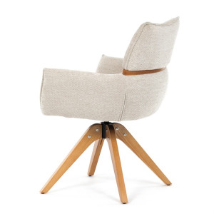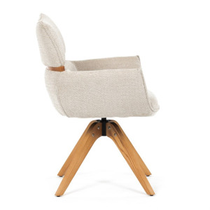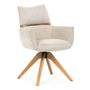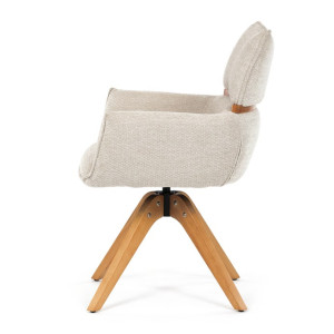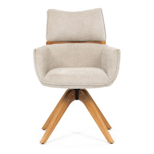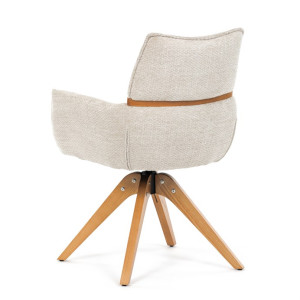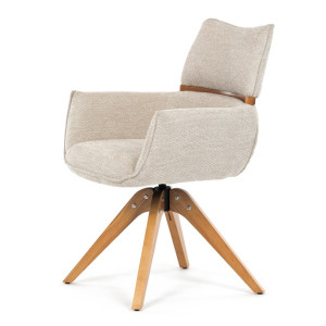 Jídelní židle Autronic v béžové barvě je skvělou volbou pro elegantní a pohodlné sezení. Její čalounění z hladké látky v kombinaci s měkkou PU pěnou poskytuje maximální komfort. Stabilitu zajišťují masivní dřevěné nohy v přírodním odstínu, který podtrhuje skandinávský styl. Díky otočné funkci o 360° s vratným mechanismem nabízí flexibilitu při sezení. Područky a dekorativní masivní prvky dodávají židli sofistikovaný vzhled. Ideální doplněk do moderní jídelny, který spojuje zábavu a praktičnost.