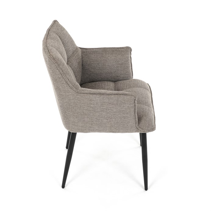 Stylová jídelní židle značky Autronic kombinuje moderní design s vysokou funkčností. Elegantní béžové čalounění z vodoodpudivé látky zajišťuje snadnou údržbu a odolnost proti nečistotám, což oceníte v každodenním provozu. Pohodlí při sezení zaručuje měkká PU pěna a integrované područky, které podporují správnou ergonomii. Stabilitu zajišťují čtyři kovové nohy v černém provedení, které podtrhují moderní vzhled. Tato židle skvěle doplní jakýkoliv jídelní prostor a přinese do něj sofistikovaný styl a pohodlí.