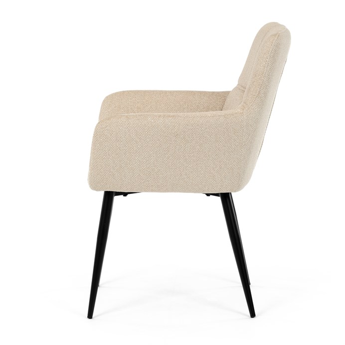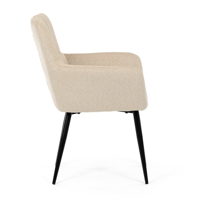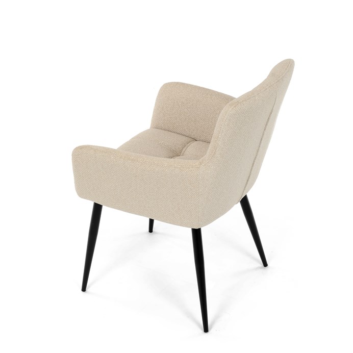 Elegantní krémová jídelní židle od značky Autronic skvěle doplní moderní i klasické interiéry. Tato stylová židle nabízí vysoký komfort díky čalounění z kvalitní látky a mekkému sedáku z PU pěny. Černé kovové nohy zajišťují stabilitu a dodávají židli jemný industriální nádech. Komfortní područky a ergonomické provedení oceníte při každém posezení. Židle se hodí nejen do domácí jídelny, ale i do restauračních prostor, kde vytvoří útulnou atmosféru.