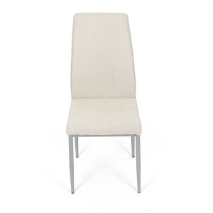 Dotaz na produktJídelní židle Autronic v industriálním stylu zaujme svým minimalistickým designem a praktickými vlastnostmi. Potah je vyroben z odolné hladké látky v krémové barvě, který snadno zapadne do různých interiérů. Pohodlí zajišťuje měkká PU pěna ve výplni, zatímco kovové nohy v šedé barvě dodávají stabilitu a pevnost. Elegantní prošívání dodává židli elegantní vzhled. Tento model je skvělou volbou pro moderní i klasické interiéry.