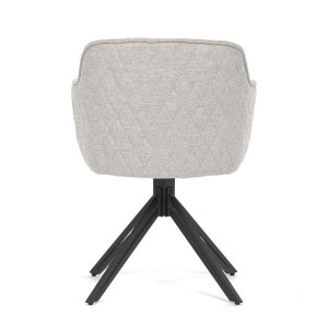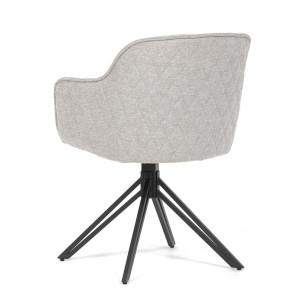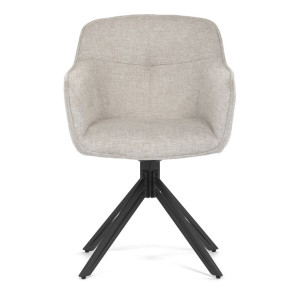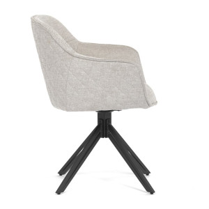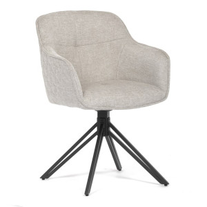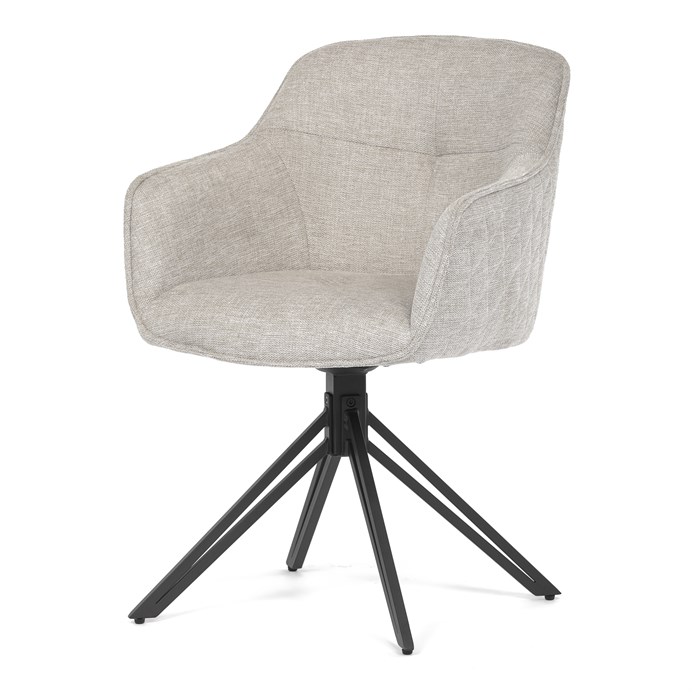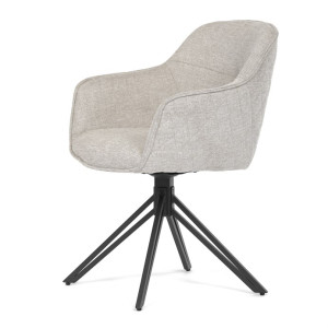 Jídelní a konferenční židle skořepinové konstrukce v zajímavém designu a ve velmi žádaném industriálním / loft stylu. Židle disponuje otočnou funkcí L90°/P90° s automaticky vratným mechanismem. Konstrukce sedáku i opěradla má pevnou kovovou kostru, potah je z jemně hrubé látky v béžovém odstínu. Polstrování je z pevné PU pěny, na sedáku v hustotě 28 kg/m3 a na opěradle 24 kg/m3. K pohodlí posedu poslouží nejen bohaté polstrování, ale i praktické a pohodlné opěrky rukou. Příjemný dekorativní prvky tvoří centrální čalounický vtah na opěradle a z vnější strany kosočtvercové prošívání. Nedílnou součástí je široká látková paspule v barvě židle, lemující celý obvod.