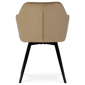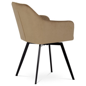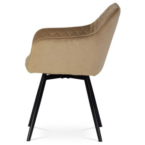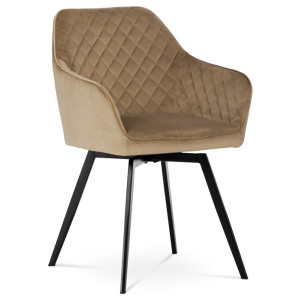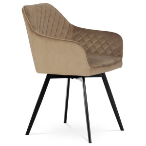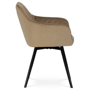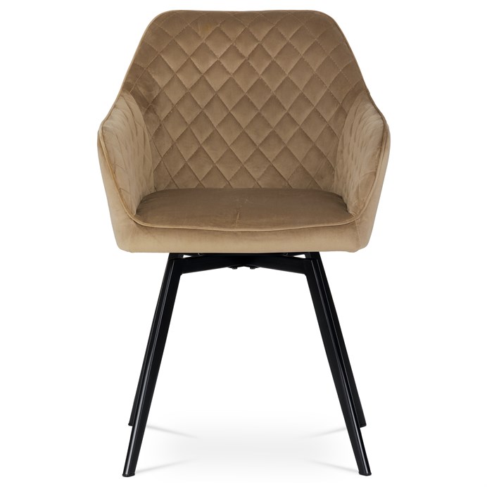 Díky svému dokonalému designu je tato židle v industriálním stylu nezaměnitelná a zároveň velmi pohodlná. Skořepina sedáku a opěradla má potah z kvalitní sametové látky v trendy odstínu zlaté cappuccino v matné úpravě. Polstrování je z PU pěny. Velmi dekorativním prvkem je výrazné kosočtvercové prošití vnitřních ploch v barvě potahu a paspule po obvodu celé skořepiny. Vybraná látka se také velmi dobře čistí. Stabilitu židle zajišťují čtyři kónické kovové nohy obdélníkového průřezu s kvalitním práškovým nástřikem v černé matné barvě. Ukončené jsou černými plastovými kluzáky, zabraňující poškození tvrdých povrchů podlah. Tato provedení produkují z tohoto modelu židle skvělou volbu pro zařízení obývacích či jídelních, ale také zasedacích místností. Nosnost židle je 110 kg.
