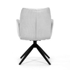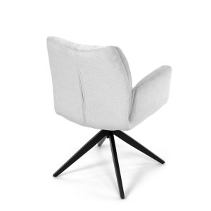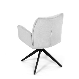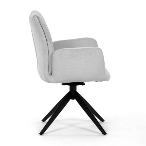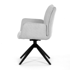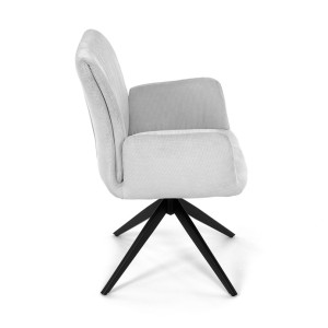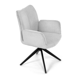 Nohy židle Autronic, usazené na robustní středové základně, mají povrchovou úpravu z výrazného černého kovu, který nápadně kontrastuje s měkkým čalouněným sedákem. Tato sofistikovaná konstrukce zajišťuje stabilitu a odolnost, takže je vhodná pro sezení téměř u každého pracovního nebo jídelního stolu. Moderní styl židle podtrhuje praktická funkce otáčení o 90°, která umožňuje snadný pohyb a všestrannost v jakémkoli pracovním prostoru nebo jídelně.