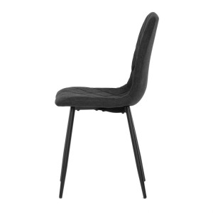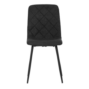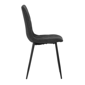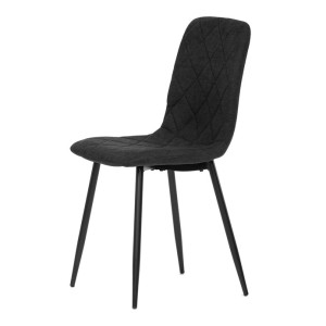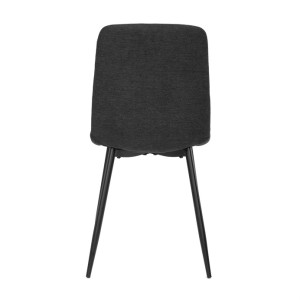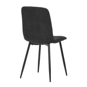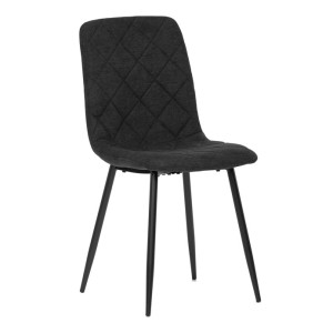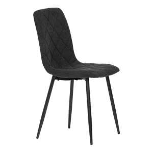 Moderní, stylová a pohodlná – to jsou hlavní atributy této černé jídelní židle s látkovým potahem a černými kovovými nohami.Tato elegantní jídelní židle je ideální volbou pro moderní interiéry. Maximální komfort je dosažen polstrováním sedáku i zádové opěrky. Čalounění z vysoce kvalitní hladké tkaniny zajistí skvělý komfort při jídle nebo dlouhých večerech s přáteli a rodinou.