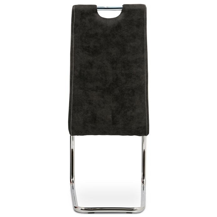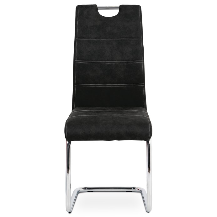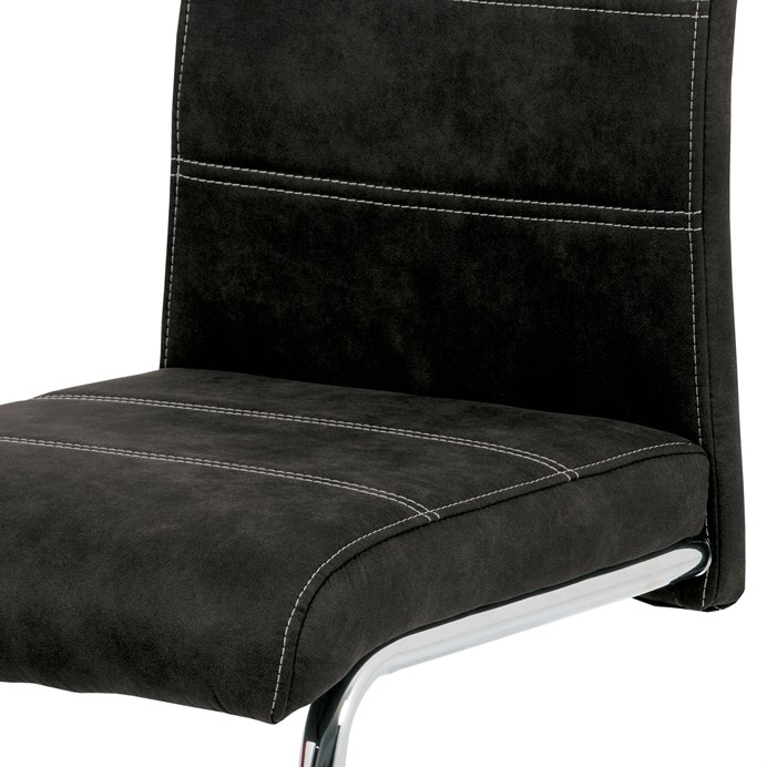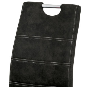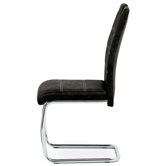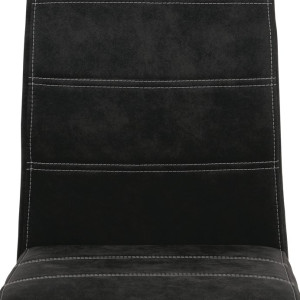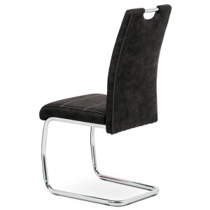 Jídelní židle s označením HC-483 BK3 nabízí kombinaci pohodlí a moderního designu v černém látkovém potahu s efektem vintage kůže. Sedák i opěradlo jsou čalouněné kvalitní látkou, která je příjemná na dotek a snadno se udržuje. Kovová pohupová podnož zajišťuje mírný pohyb při sezení, což přispívá k většímu komfortu během stolování. Židle nemá područky ani možnost výškového nastavení, což ji činí kompaktní a vhodnou do různých interiérů. Stabilní kovová konstrukce je navržena pro dlouhou životnost a podporuje bezpečnou nosnost pro běžné užívání.