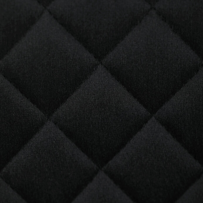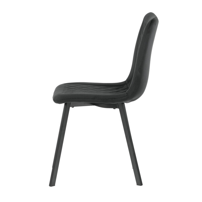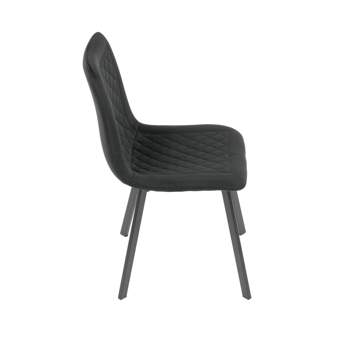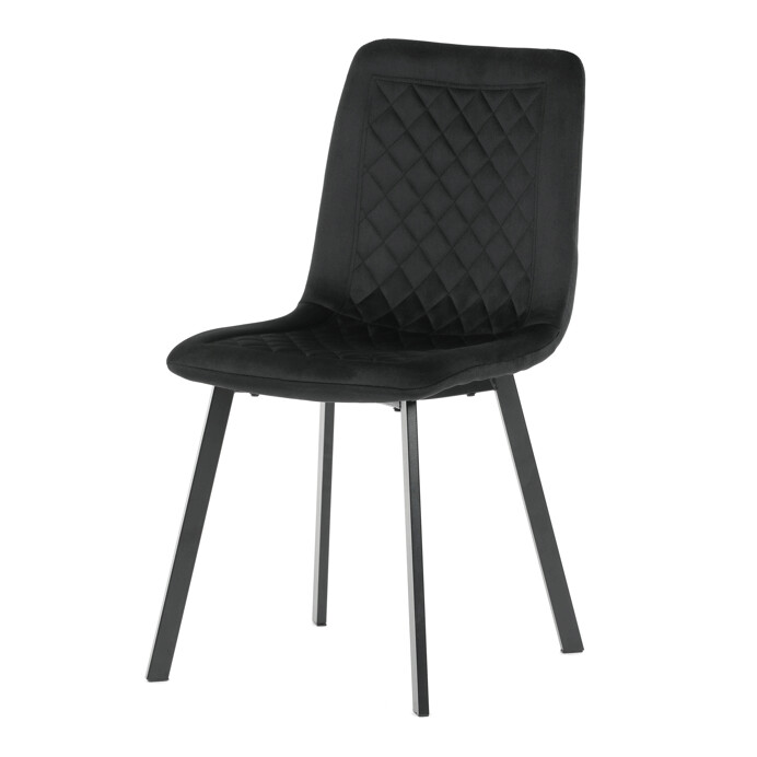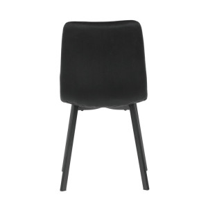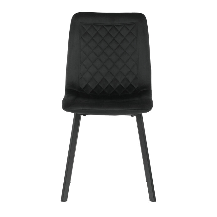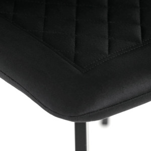 Jídelní židle s černým sametovým potahem nabízí příjemný a měkký povrch pro pohodlné posezení. Sedák i opěradlo jsou zdobeny designovým prošitím, které dodává židli elegantní a moderní vzhled. Stabilní kovové nohy v černé barvě zajišťují pevnou oporu a dlouhou životnost. Židle nemá područky, což umožňuje snadné zasunutí pod stůl a úsporu místa. Je vhodná do jídelních prostor i moderně zařízených interiérů.