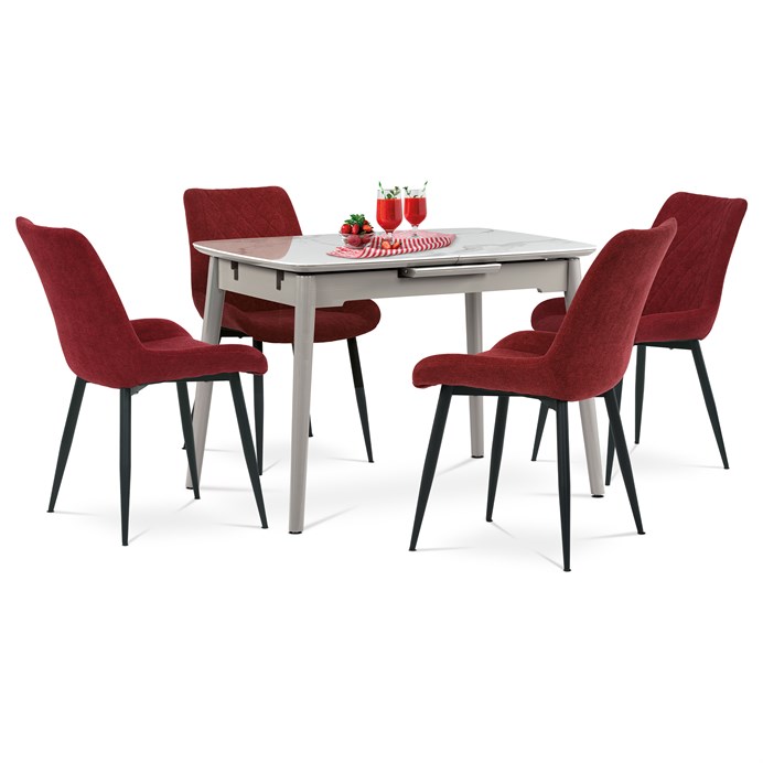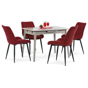 Dopřejte si krásu a pohodlí našich jídelních židlí v industriálním stylu. Tato židle pochází od renomované značky Autronic a pyšní se červeným odstínem, který bez problémů doplní jakýkoli interiér. Elegantní rovnováhy mezi industriální houževnatostí a vytříbenou estetikou je dosaženo kombinací hladkého látkového materiálu s robustní kovovou čtyřnohou základnou, která je ideální pro vaši jídelnu nebo pracovní kancelář.