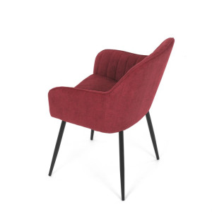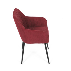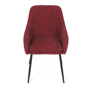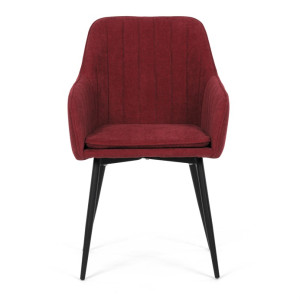 Stylová jídelní židle od značky Autronic zaujme moderním průmyslovým designem, který skvěle zapadne do každého interiéru. Je čalouněná hladkou červenou látkou, která je nejen trvanlivá, ale také příjemná na dotek. Komfort při sezení zajistí pohodlné područky a měkká pěnová výplň. Pevná kovová konstrukce černé barvy s s nohami kruhového profilu dodává stabilitu a elegantní vzhled. Tato jídelní židle je ideální volbou pro moderní jídelny, kde se snoubí pohodlí s estetikou a dlouhou životností.