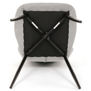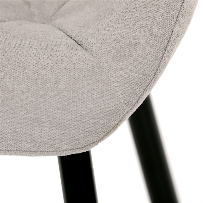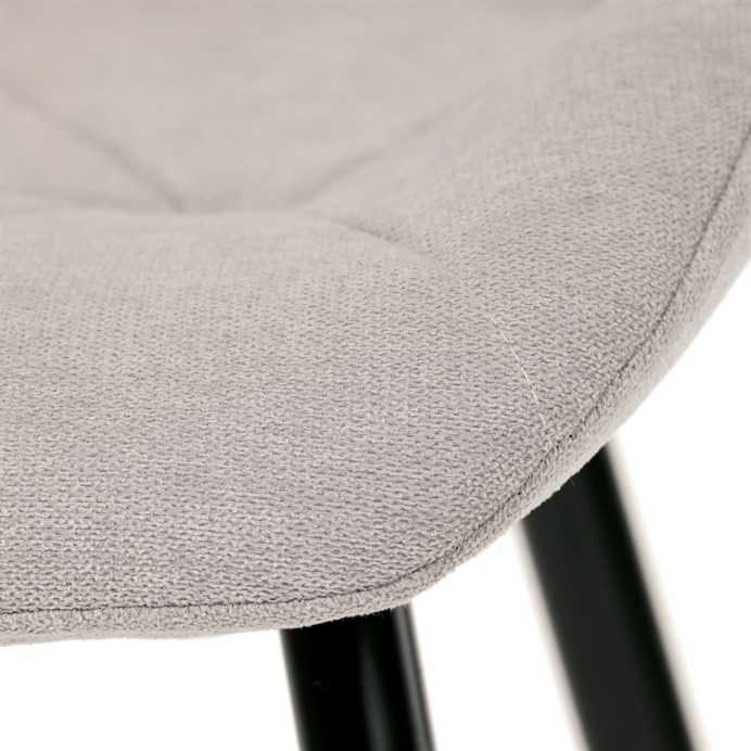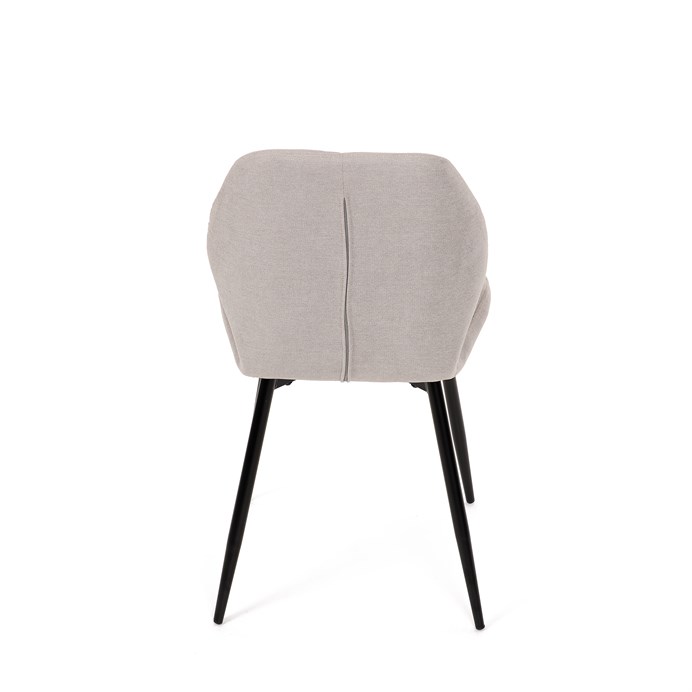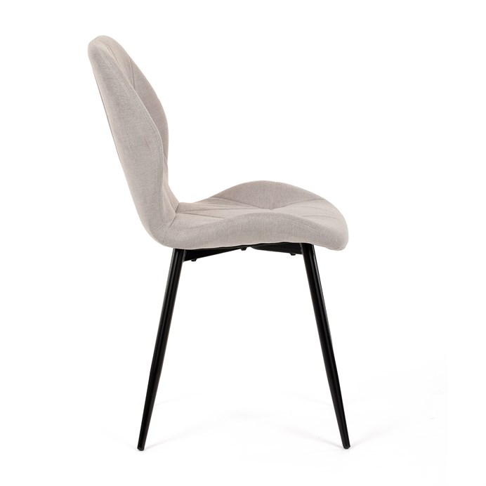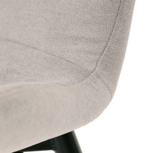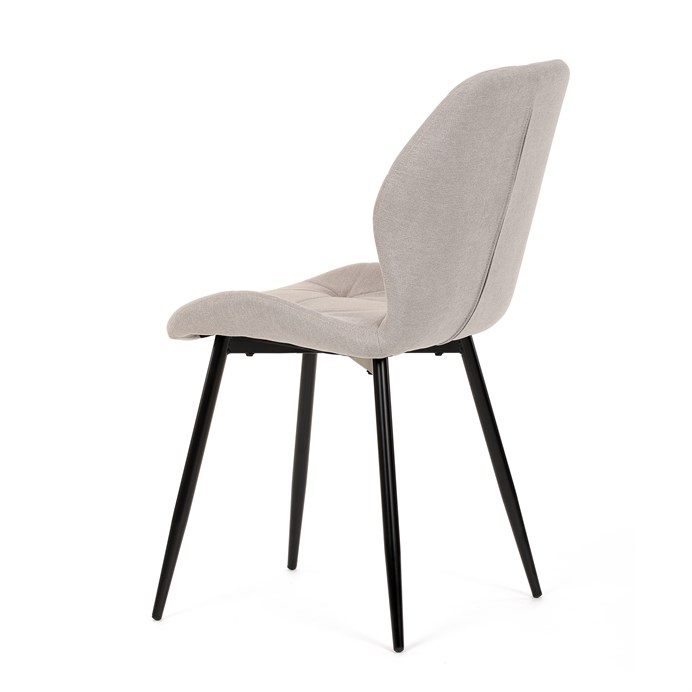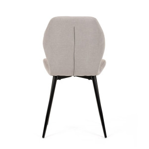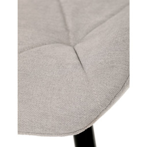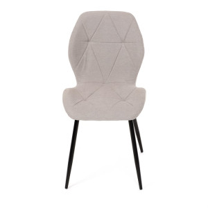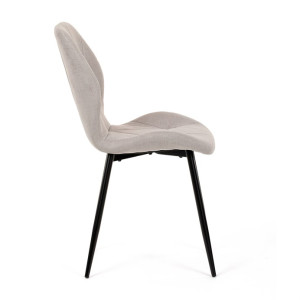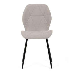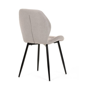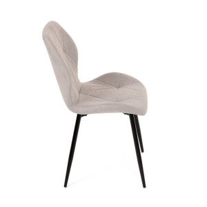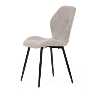 Židle je čalouněná kvalitní látkou, která je měkká na dotek a zároveň odolná proti opotřebení. Ergonomicky tvarované sedadlo a opěradlo s dekorativním prošíváním poskytují vysoký komfort i při delším sezení. Židle stojí na pevných kovových nohách v černém provedení, které zajišťují stabilitu a dlouhou životnost. Nohy jsou elegantně zkosené, což dodává židli moderní vzhled a zajišťuje pevnou stabilitu.