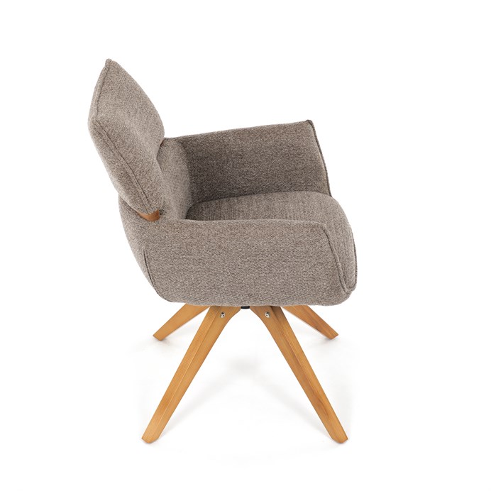Jídelní židle Autronic v krémové barvě je skvělou volbou pro elegantní a pohodlné sezení. Její čalounění z hladké látky v kombinaci s měkkou PU pěnou poskytuje maximální komfort. Stabilitu zajišťují masivní dřevěné nohy v přírodním odstínu, který podtrhuje skandinávský styl. Díky otočné funkci o 360° s vratným mechanismem nabízí flexibilitu při sezení. Područky a dekorativní masivní prvky dodávají židli sofistikovaný vzhled. Ideální doplněk do moderní jídelny, který spojuje zábavu a praktičnost.