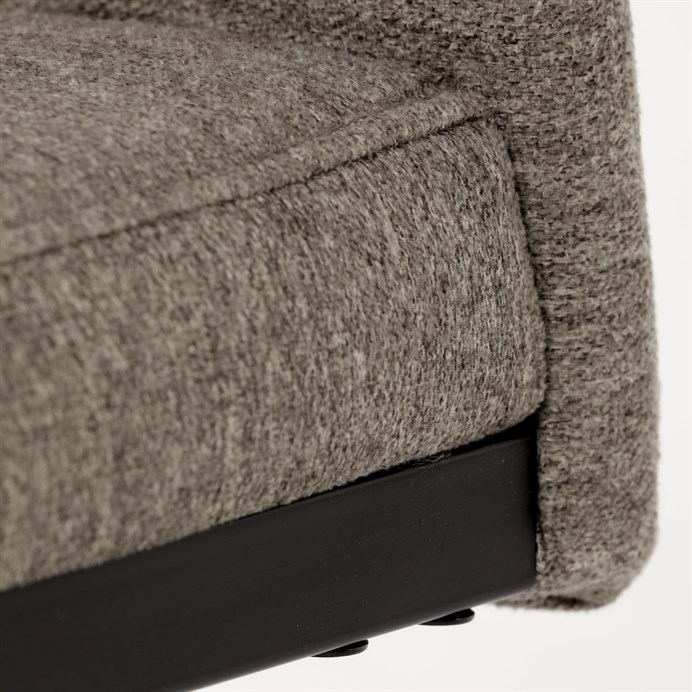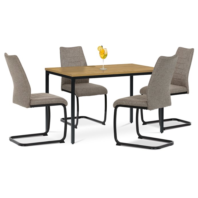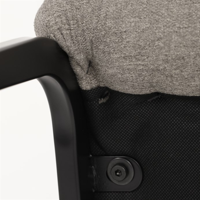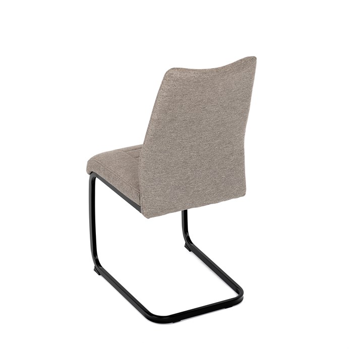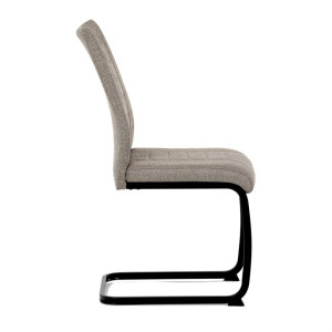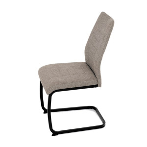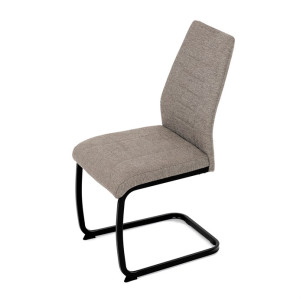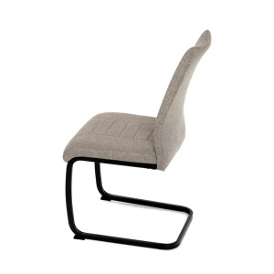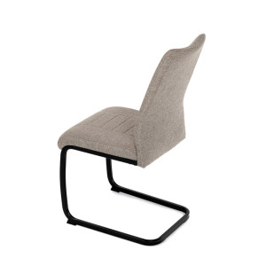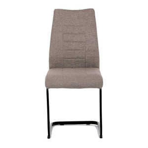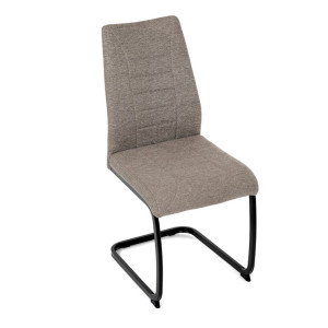 Židle je čalouněná jemnou hnědou látkou, která je měkká na dotek a odolná proti opotřebení. Ergonomický tvar a polstrované sedadlo spolu s pohupovou podnoží v černé barvě zajišťují díky lehkému pružení komfort při sezení. Ozdobné prošívání na opěradle dodává židli elegantní vzhled.