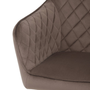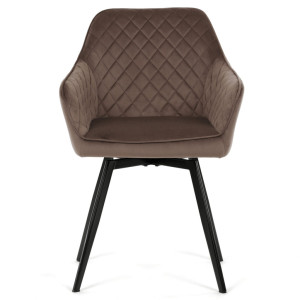Jídelní židle DCH-425 BR4 z kolekce Autronic nabízí komfortní sezení díky sametové látce v hnědém odstínu, která příjemně doplňuje moderní interiéry. Čalouněné opěradlo i sedák jsou ergonomicky tvarované a vybavené integrovanými područkami, které zvyšují pohodlí při delším posezení. Stabilní kovová podnož v černém matném provedení zajišťuje pevnost a stabilitu celé židle. Praktickou funkcí je otočný mechanismus s možností otáčení o 180° a vratným pohybem, který usnadňuje manipulaci a přístup k židli. Nosnost židle odpovídá běžným standardům pro jídelní sezení, což ji činí vhodnou volbou pro domácnosti i komerční prostory.