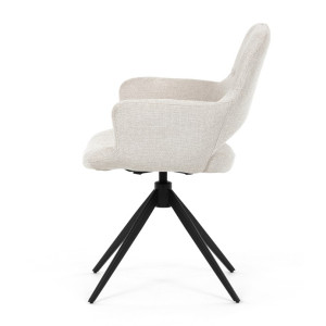 Dotaz na produkt Na splátky ještě dnesElegantní jídelní židle značky Autronic v krémové barvě je ideální kombinací pohodlí a moderního designu. Čalounění z měkké látky s výplní z PU pěny zajišťuje komfortní sezení, zatímco černá kovová základna dodává židli stabilitu a stylový vzhled. Vratný otočný mechanismus 360° umožňuje snadné otáčení a automatické vrácení do původní polohy. Židle je vybavena praktickými područkami, které zvyšují pohodlí při sezení. Perfektní volba pro každou jídelnu, která hledá stylový a praktický doplněk.
