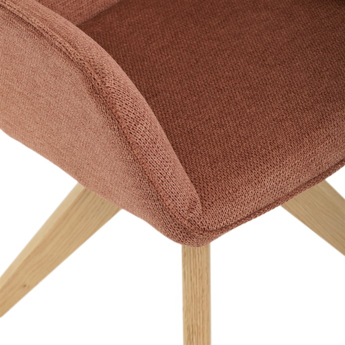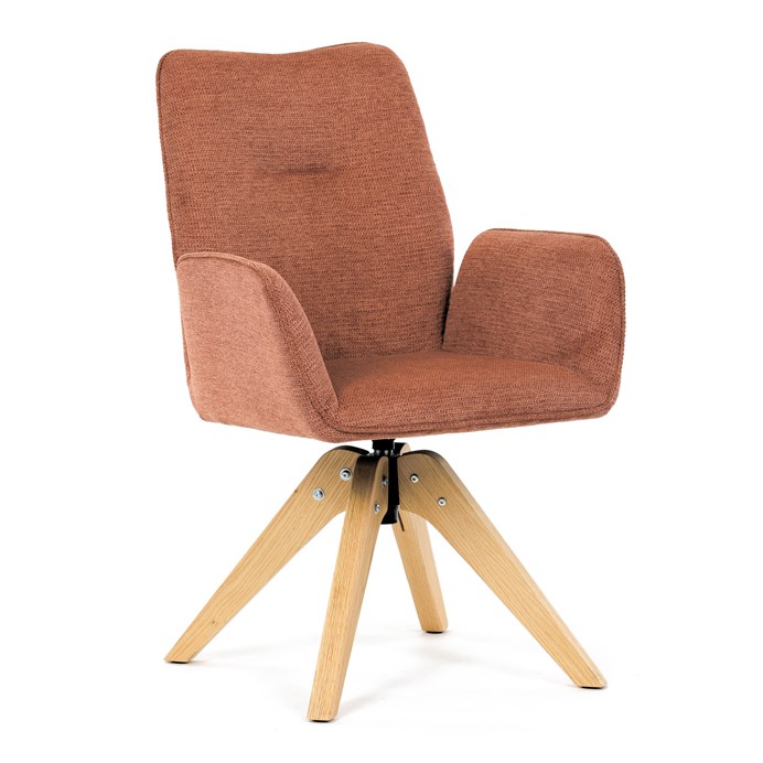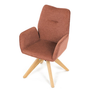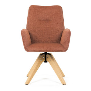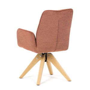 Stylová jídelní židle značky Autronic v moderním designu, která kombinuje komfort a eleganci. Její pohodlný sedák i opěrák jsou čalouněny voděodolnou látkou v příjemném oranžovém odstínu, což z ní činí skvělý doplněk do jakéhokoliv interiéru. Masivní dřevěné nohy v přírodní barvě dodávají židli stabilitu a odolnost, zatímco otočný mechanismus s funkcí 360° přináší uživatelský komfort. Tato jídelní židle je ideální nejen do domácností, ale také do kaváren či restaurací, kde je požadován moderní a funkční nábytek.