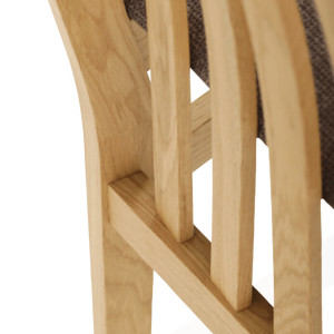 Dřevěná jídelní židle z masivního dubového dřeva je demonstrací dokonalé řemeslné práce. Zaujme nejen svým rustikálním stylem, ale i perfektním zpracováním. Styl vychází z minimalistického severského designu, v temnějším nádechu přírodního odstínu. Tato barevnost skvěle vykreslí léta dubu a podtrhne její provedení.