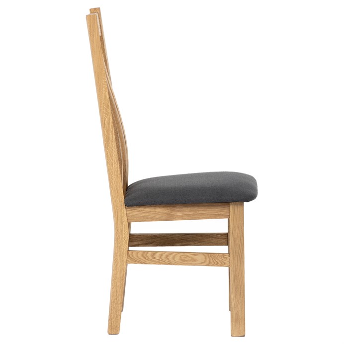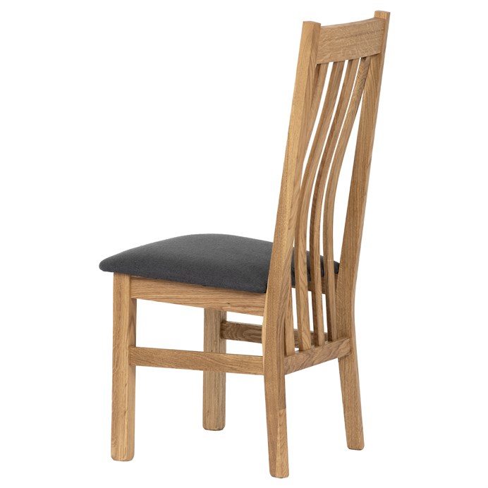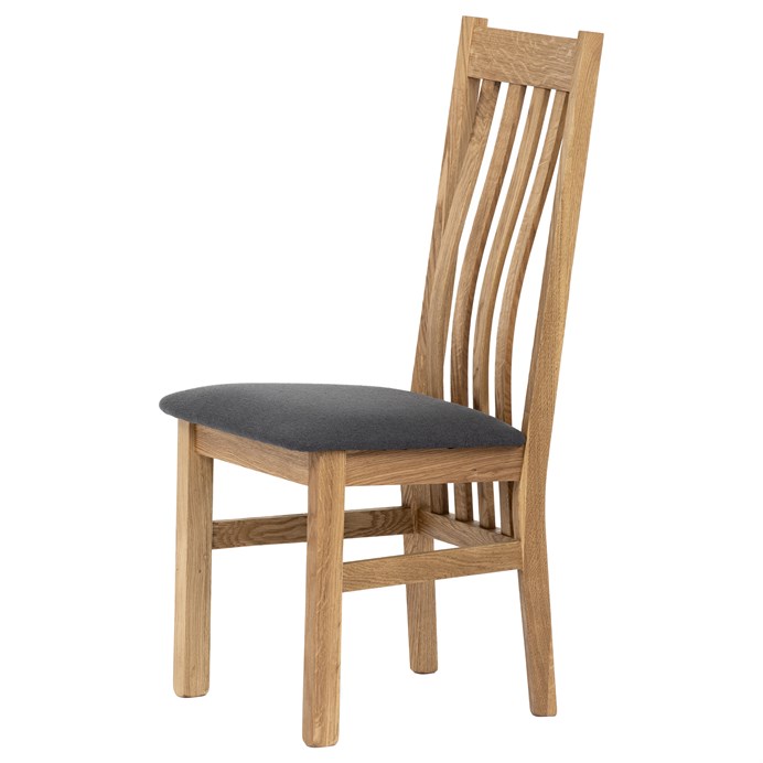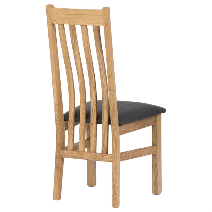 Čisté linie a vysoce kvalitní řemeslné zpracování dřevěného masivu nastavuje okouzlující akcenty a podtrhuje útulnou atmosféru v interiéru. Tato židle Vás zve nejen k odpočinku, ale rozjímání s rodinou i přáteli, kde oceníte ergonomicky tvarované vzpěry opěradla, kopírující zakřivení páteře. Pohodlný sedák je potažen odolnou látkou z polyesterových vláken, v antracitově šedém barevném odstínu. Polstrování je kvalitní PU pěnou. O kvalitě potahové látky Vás jistě přesvědčí její parametry - gramáž 340 g/m2, martindale naprosto skvělých 80 000 cyklů a barevná stálost na světle je na stupni 5.