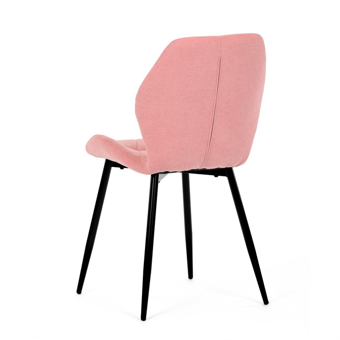 Židle je čalouněná kvalitní látkou, která je měkká na dotek a zároveň odolná proti opotřebení. Ergonomicky tvarované sedadlo a opěradlo s dekorativním prošíváním poskytují vysoký komfort i při delším sezení. Židle stojí na pevných kovových nohách v černém provedení, které zajišťují stabilitu a dlouhou životnost. Nohy jsou elegantně zkosené, což dodává židli moderní vzhled a zajišťuje pevnou stabilitu.